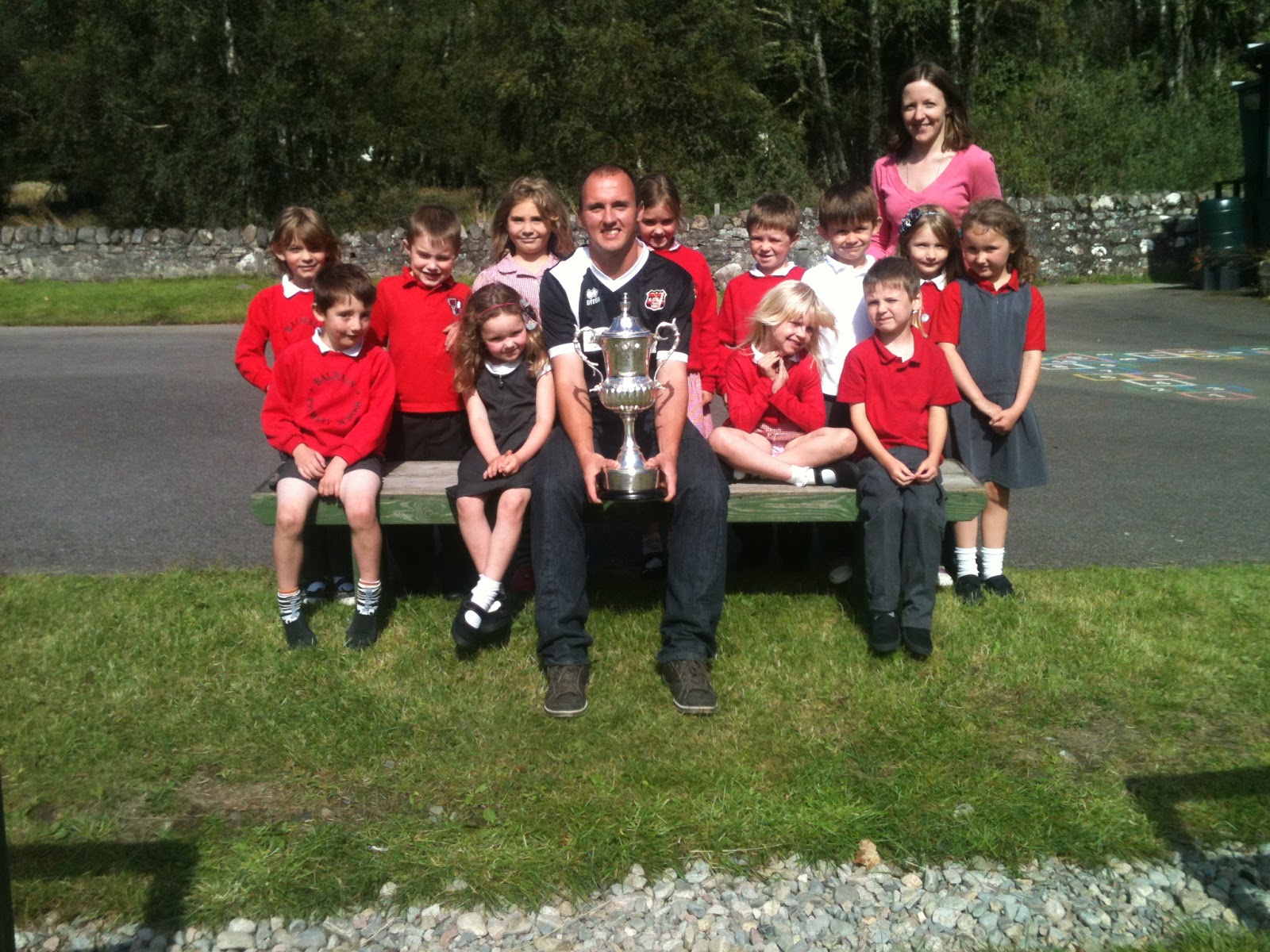 The focus however is on pictures of the MacAulay and the pleasure it has brought to the Glen and all who live in it. There are snaps of the Primary kids in both Glen schools, along with their teachers. Dolly Fraser , widow of the late Danny Fraser, Shewglie who was instrumental in the rebirth of Glen Shinty in the late 1940s is featured along with former President/Chairman Alan Bell and the staff of the Glenurquhart Care Centre Care . So does Lally English , sister of the late Prof  Peter English who was synonymous for so many years with shinty in the Glen. Mrs Josie Mackenzie retired Deputy Head of Glenurquhart High School is also pictured with the trophy as is Vice-Chairman Ken Fraser and former Club secretary Hazel Stewart. Happy memories to hold on to-events conspired to make us appreciate the day and the victory. Let whoever wins it next enjoy it as much as the Glen did